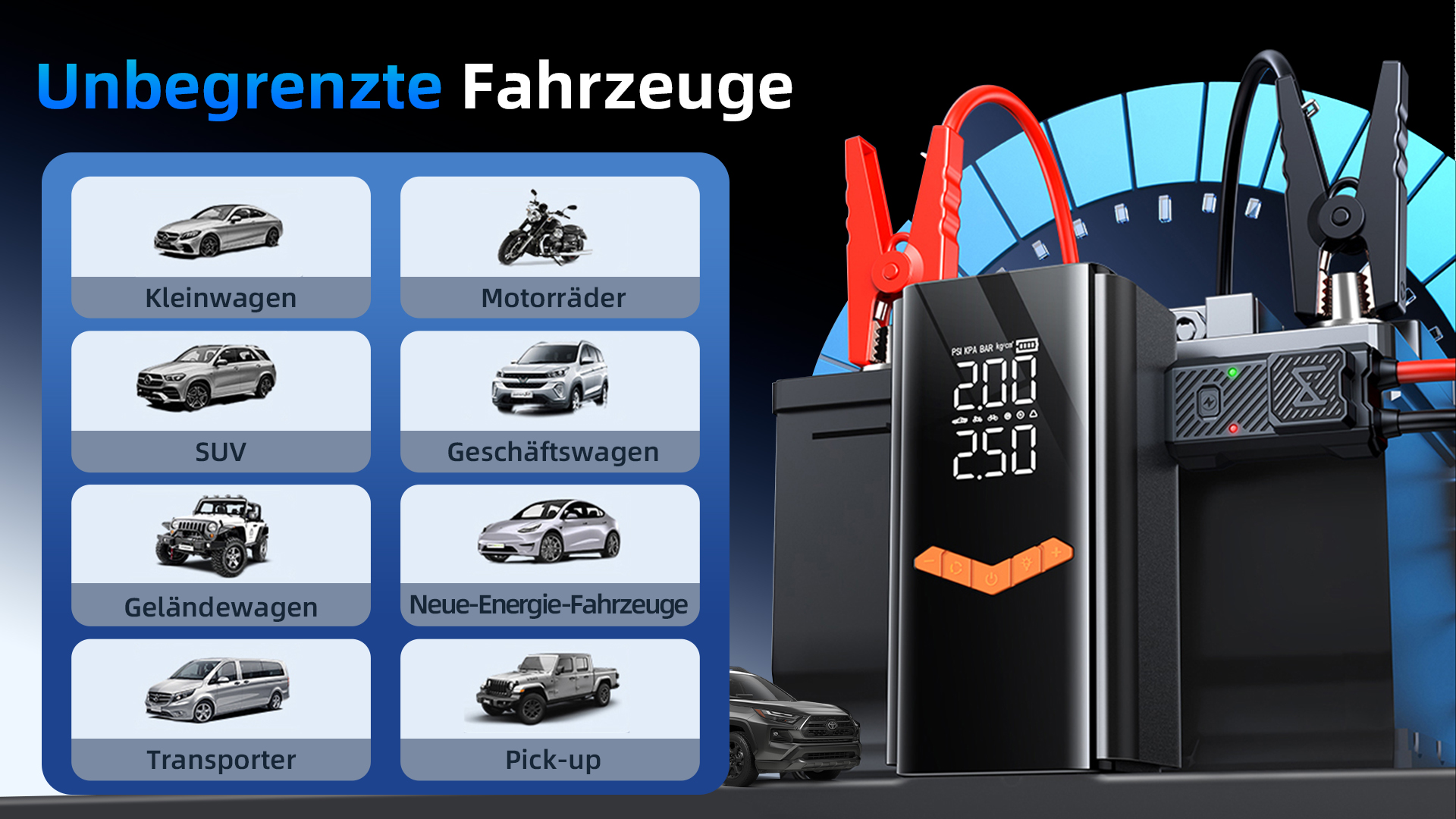 • NULL-SPANNUNGS-STARTBOOSTER: Startet auch Motoren mit großem Hubraum sofort