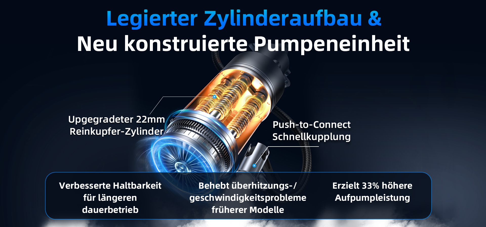 Präzisionsgefertigter Reinkupferkern für unaufhaltsame Power! Unsere Luftfahrt-legierten Kolben rotieren mit 20.000 U/min (33 % schnellere Beschleunigung) und erzeugen massive Luftströme bei gleichzeitig 33% geringerem Energieverbrauch.