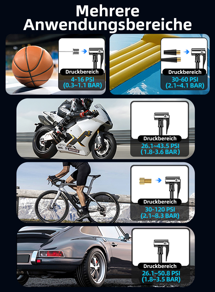 Schließen Sie den Luftschlauch mit dem passenden Adapter an das Ventil Ihres Reifens an.