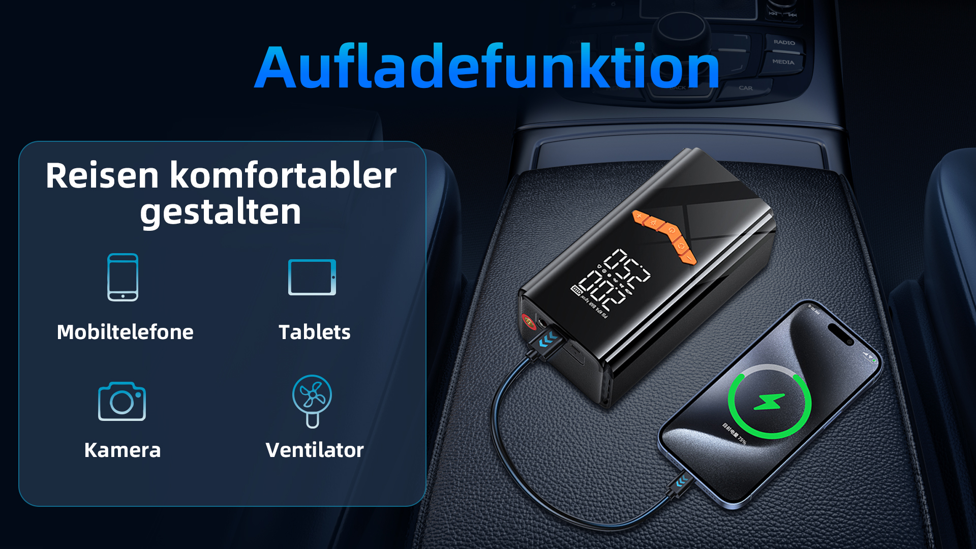 • Keine Abhängigkeit mehr vom Zigarettenanzünder