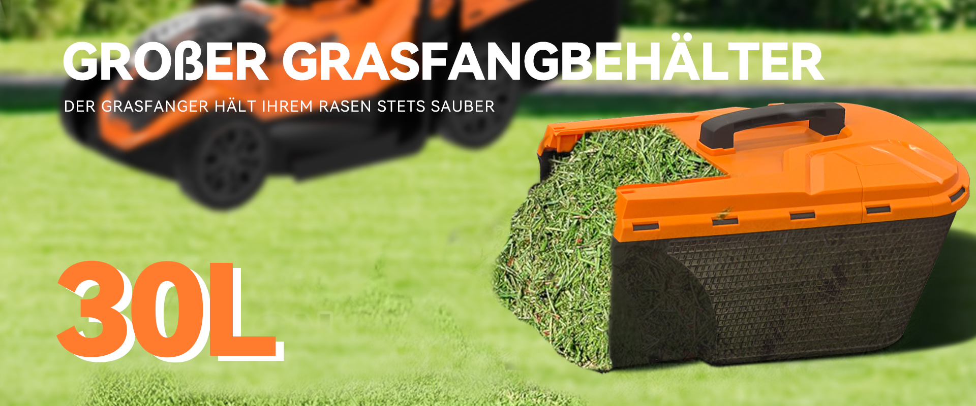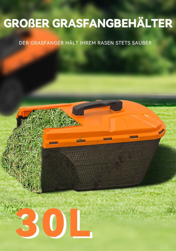 Ausgestattet mit einem 30-Liter-Hybrid-Grasfangsack, der für optimalen Luftdurchfluss sorgt und Schnittgut komprimiert.
