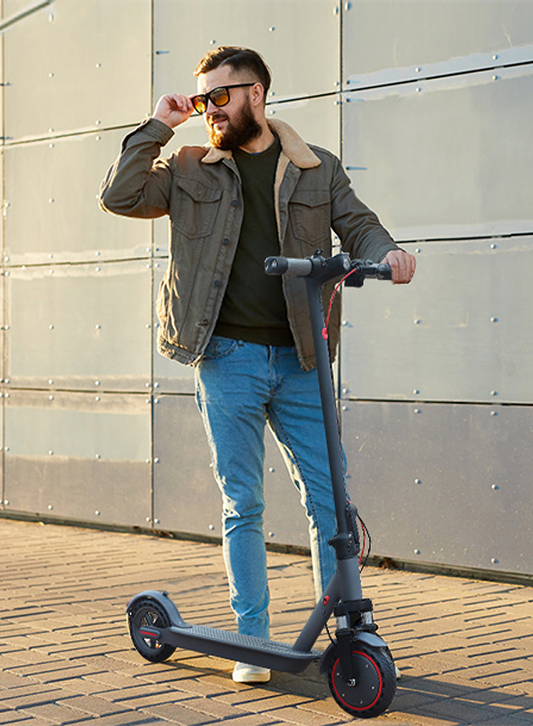 Der Elektroroller lässt sich in 3 Sekunden zusammenklappen und ist mit nur 13,2 kg ein Leichtgewicht, das sich leicht transportieren und verstauen lässt. Er kann mühelos in öffentlichen Verkehrsmitteln transportiert oder auf dem Rücksitz des Autos, im Büro und überall dort, wo Sie wollen, platziert werden.