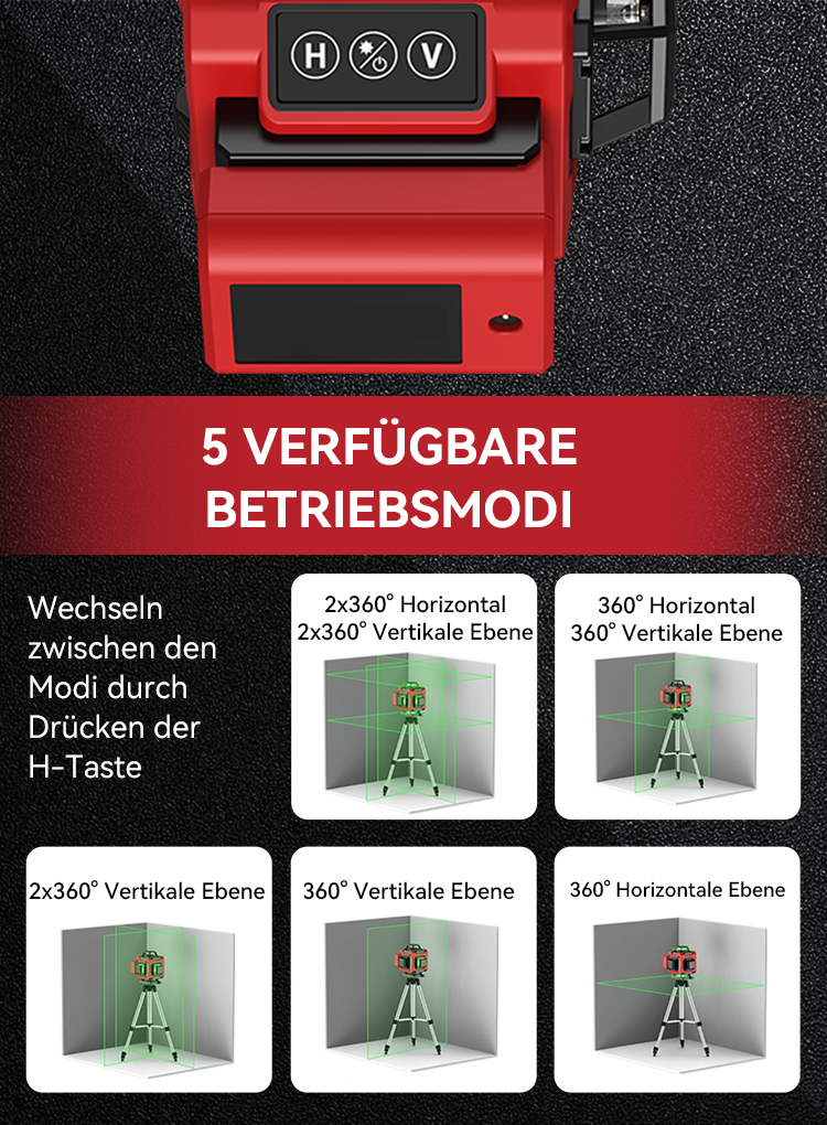 Mit einer einfachen Ein-Knopf-Bedienung ist dieser Kreuzlinienlaser äußerst benutzerfreundlich und sowohl für Anfänger als auch für erfahrene Fachleute geeignet. Der Kreuzlinienlaser bietet ein kompaktes und ergonomisches Design, das es angenehm macht, ihn zu halten und einfach zu handhaben. Er übernimmt praktisch die harte Arbeit für Sie und sorgt dafür, dass alles perfekt ausgerichtet ist, ohne dass Sie sich viel damit beschäftigen müssen. Die erstklassige Verarbeitungsqualität mit robusten Materialien gewährleistet eine lange Lebensdauer und hohe Zuverlässigkeit.