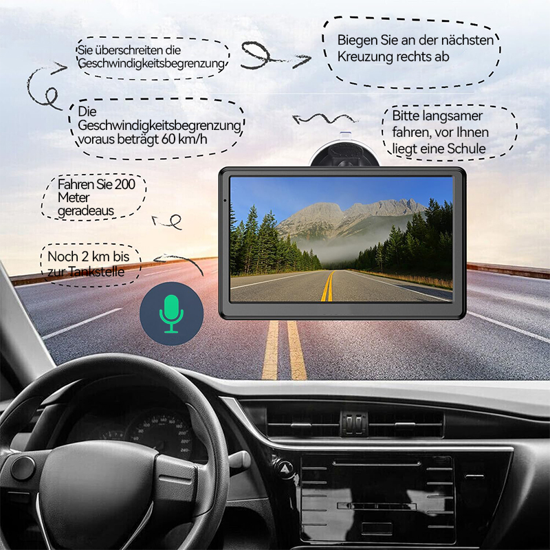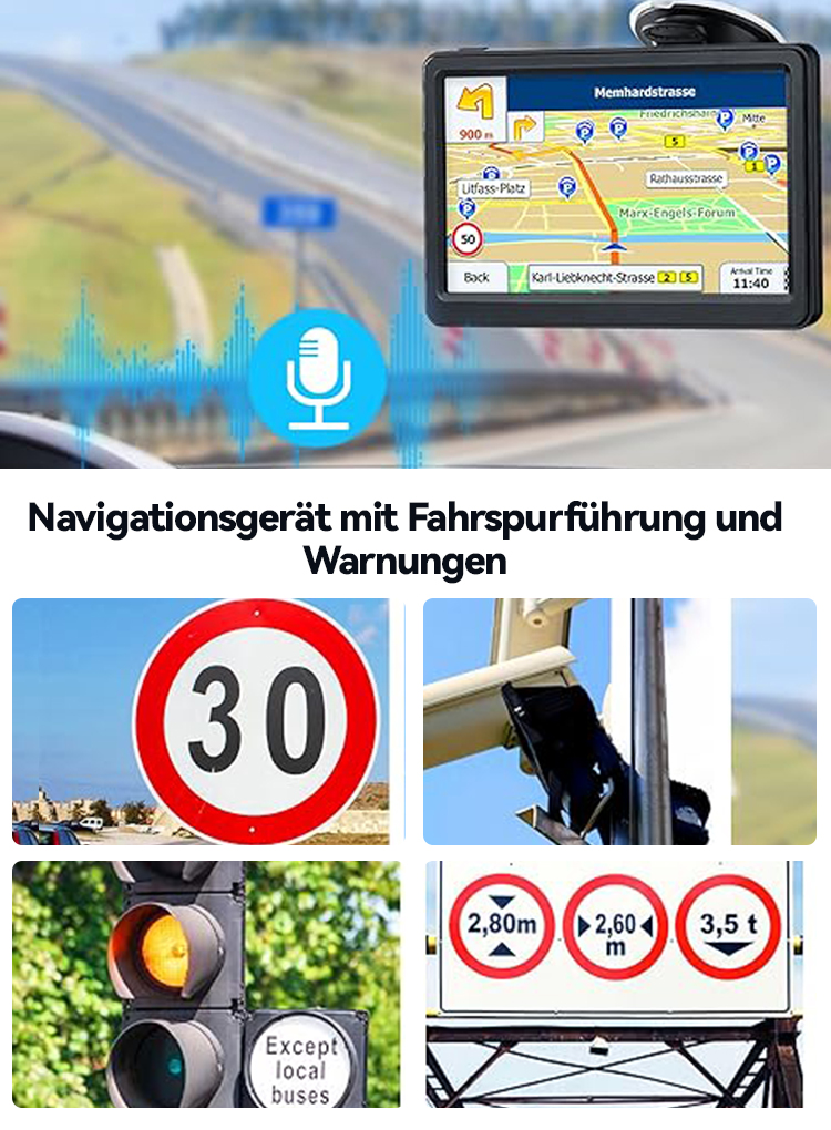 - Fahrerwarnungen, Geschwindigkeitskameras, Geschwindigkeitsbegrenzungen, Straßennameansagen, Fahrspurführung & voraussichtliche Ankunftszeit
