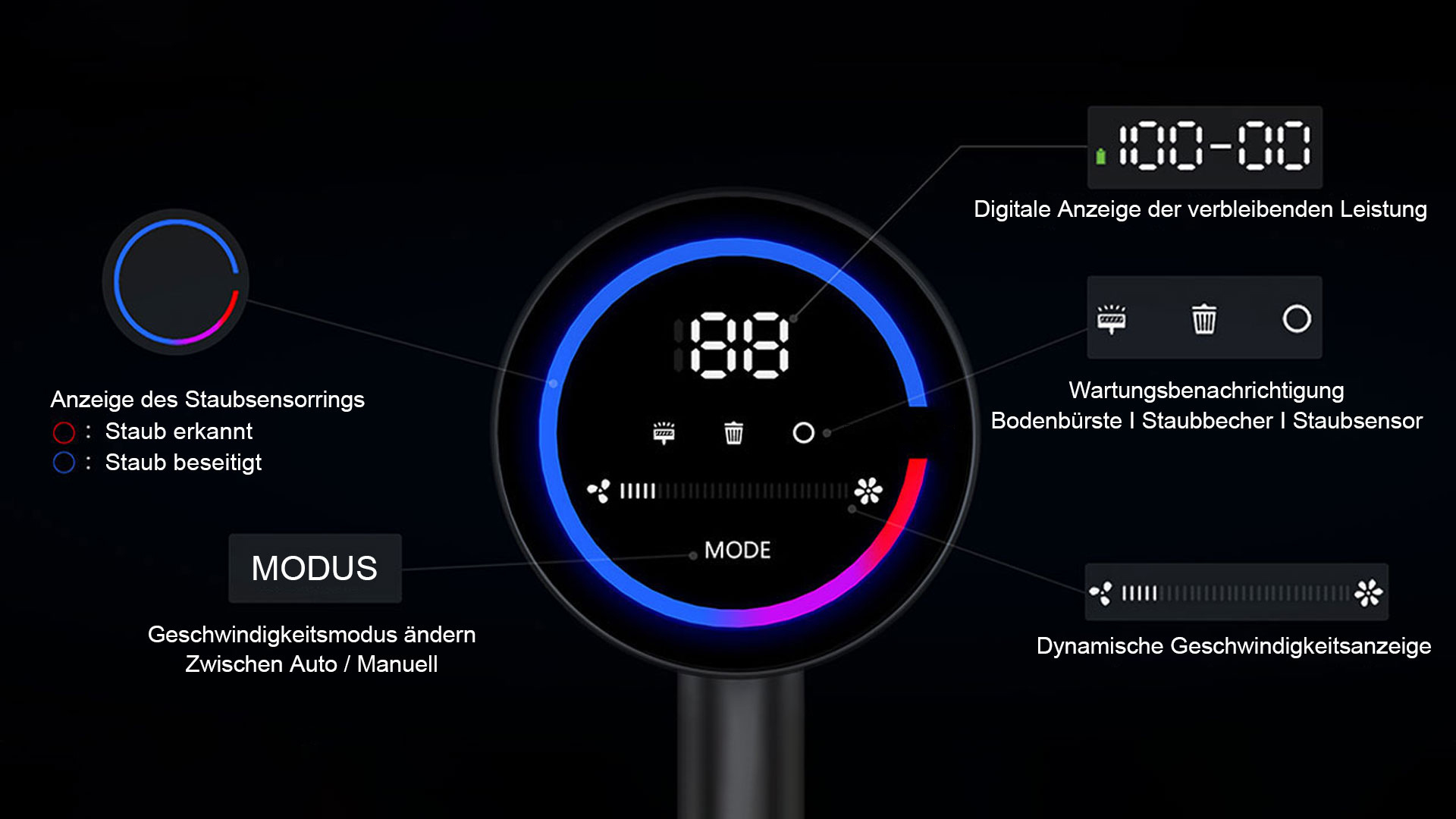 Smart Ring Detect ™ - Erkennt Bodenstaub in Echtzeit und ändert dynamisch die Ringfarbe auf dem LED-Bildschirm