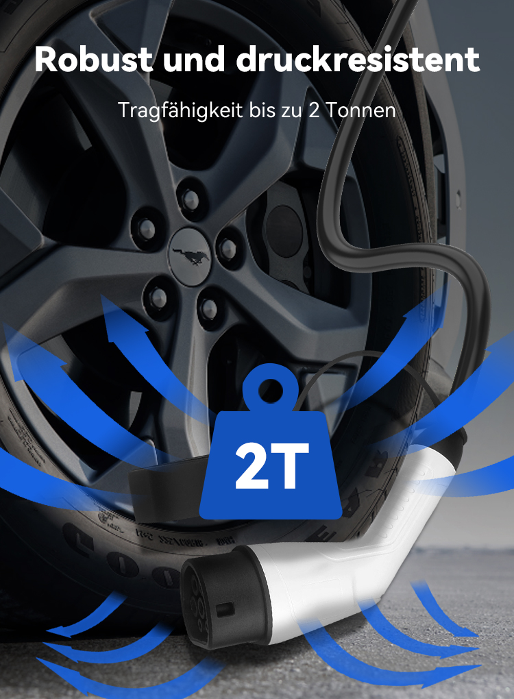 Der Stecker ist IP65-zertifiziert und bietet Schutz vor Staub und Strahlwasser, wodurch das Kabel ideal für zuverlässiges Laden im Außenbereich unter alltäglichen europäischen Wetterbedingungen geeignet ist.