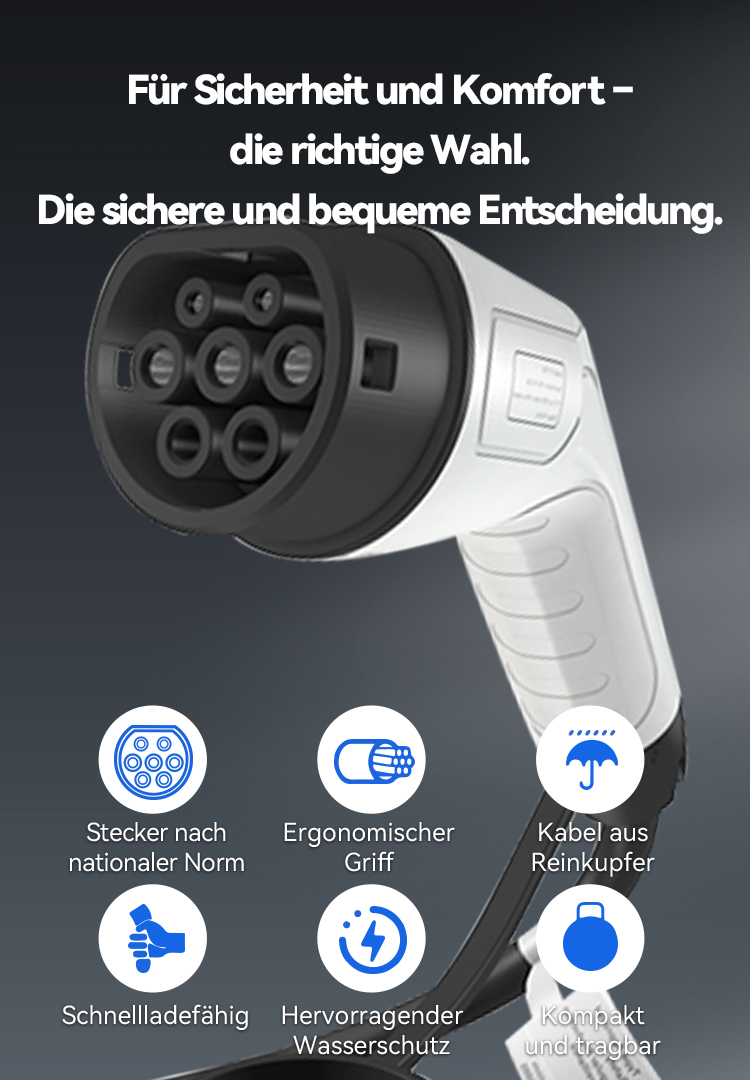 Ob zu Hause, am Arbeitsplatz oder an öffentlichen AC-Ladestationen – diese Kabel bieten eine zuverlässige und unkomplizierte Lösung für den täglichen Einsatz in ganz Europa.